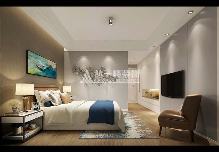 本案采取现代简约风格,简约风格是简单而具有平味的设计风格、难点在于细节和色彩上的把握。本案吊顶采用于巧妙设计、地面与电视背景墙均采用简洁形式形成一个整体、给人感觉一种沉稳、大气的感觉相结合。体现出现代社会生活的精致与个性。简约风格色彩设计也是非常关键的,一般都是通过色彩之间来突出简约。本案采用浅木色与白色相互结合,使整体感觉清爽、简约。使人回家后脱离了城市的忙碌生活、灯红酒绿,迎来了一个安静、明朗、宽敞、舒适的家,来消除工作的疲惫,忘却都市的喧嚣。